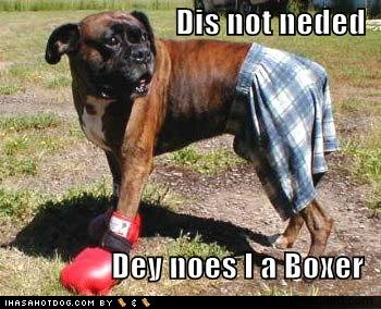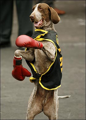 BTW, I don't like dogfighting, it's so hard to get boxing gloves on a dog...