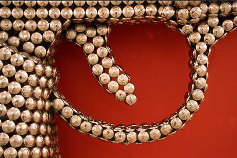 ...And no small amount of talent. glatt Friday Mar 13 04:22 PM I looks like it's made of solid ball bearings, but really he works with disks that are a lot like bottle caps. So you should thing of this in terms of bottle caps. xoxoxoBruce Friday Mar 13 04:54 PM The link says the shiny discs are spot-welded together. They aren't, they're TIG welded, but I doubt many people slumming the art gallery know, or care. Likely just us weirdos, right Digr? Gravdigr Friday Mar 13 05:16 PM TIG snobs.
