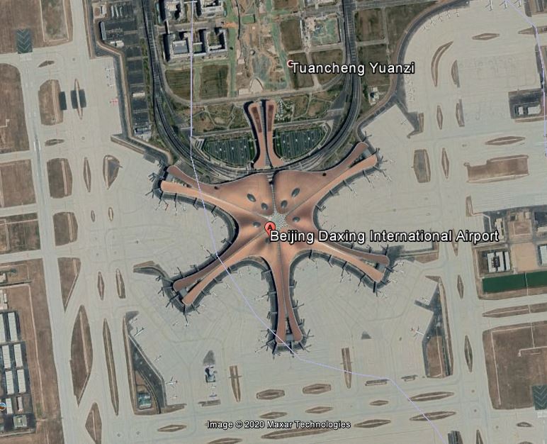 This image is from The Blue Swan Daily. The one that really caught my attention was from an article in Architectural Digest, but the file was too big to use here. This one's still pretty big.... but it's a BIIIIG building! It's reportedly the largest single structure airport terminal building in the world.