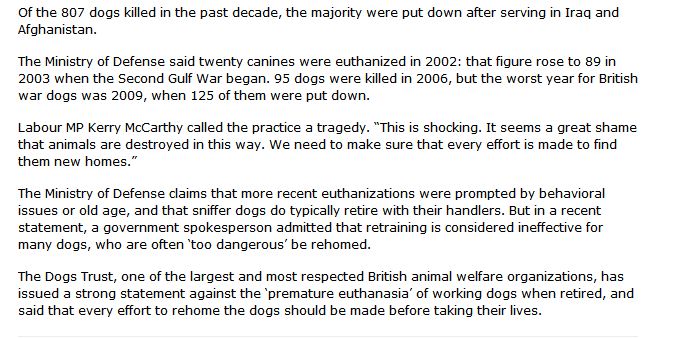 But if everyone signing the petition was willing to pay The Dog's Trust to support a war dog for life, then they could work out a way to stop this happening. |