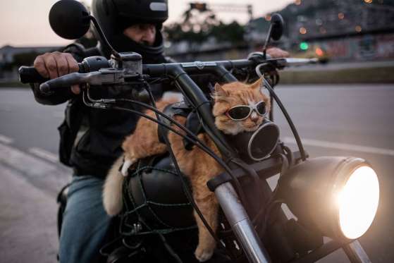 Rio de Janeiro A biker with his 12-year-old cat Chiquinho, which always rides with him on his motorbike, on June 19. |