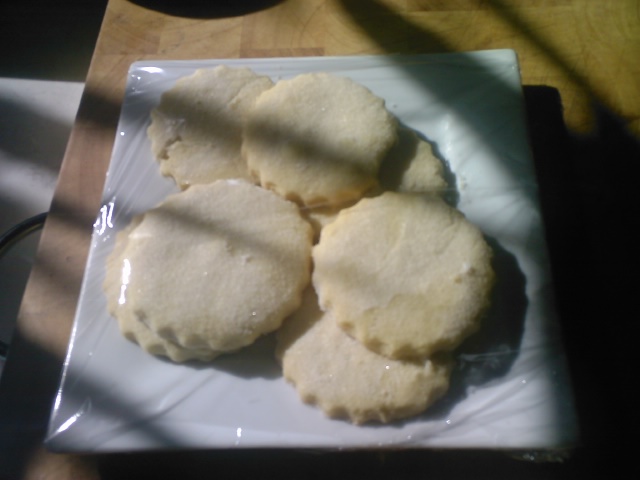 Yesterday I made cherry cake and shortbread biscuits (cookies). |