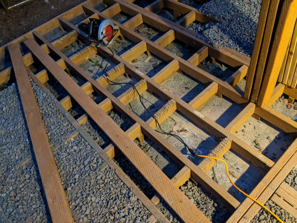 What kind (species) of wood is that? you're laying it right on the concrete. I'm skeert. why not say fuck the concrete, dig a few footers and put posts up and hang it like a normal deck? |