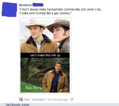 Perry should be here now too, as this is probably his dying gasp, swan song. NY Times RICHARD A. OPPEL Jr. December 8, 2011 Perry’s Anti-Gay Rights Focus Is Divisive Even to Staff OKATIE, S.C. — Gov. Rick Perry of Texas’ hard turn the past two days on gay issues, in which he has suggested that gay rights are inconsistent with both American and Christian values, has generated enormous criticism from lesbian and gay organizations and some religious groups, and has even helped split Mr. Perry’s top campaign aides over a new ad. In that campaign ad, released on Wednesday, Mr. Perry says “you don’t need to be in the pew every Sunday” to know it is wrong that gay men and lesbians openly serve in the military at a time when there is no organized prayer in public schools. Perry aides said neither the criticism of Mr. Obama nor the new ad were intended to be anti-gay, nor were they coordinated; they said that the ad had been in the works for weeks and that they had no advance notice of the administration’s new policy.<snip> Nearly three out of five respondents said that they support legal recognition in one form or another for same-sex couples. The poll found that 22 percent said same-sex couples should be allowed to marry, while 36 percent said they supported civil unions. Only 38 percent said they supported no legal recognition for same-sex couples, though a majority of evangelical Christians responded that way. . So here is Perry's ad... And besides all that: Obama has not waged a war on religion, and somehow it is incredibly provincial to pledge a fight against issues already settled by US Supreme Court decisions, just to get current attention away from Romney, Paul, and Gingrich. |