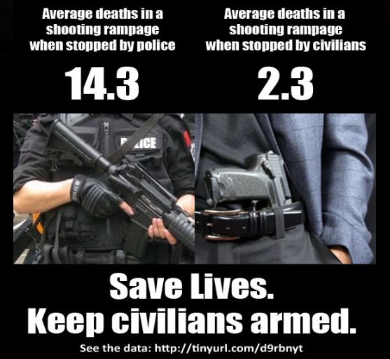 Average deaths in a killing rampage when the killer does not have a gun: fewer. Source: my arse. |