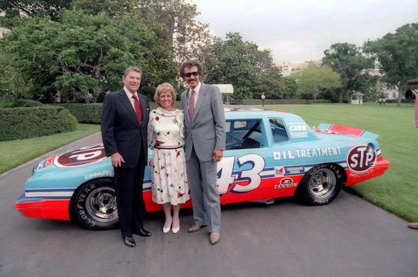 King Richard campaigned for The Great Communicator. The Gip was in attendance for Petty's 200th win. The first (only?) president to attend a NASCAR race. |