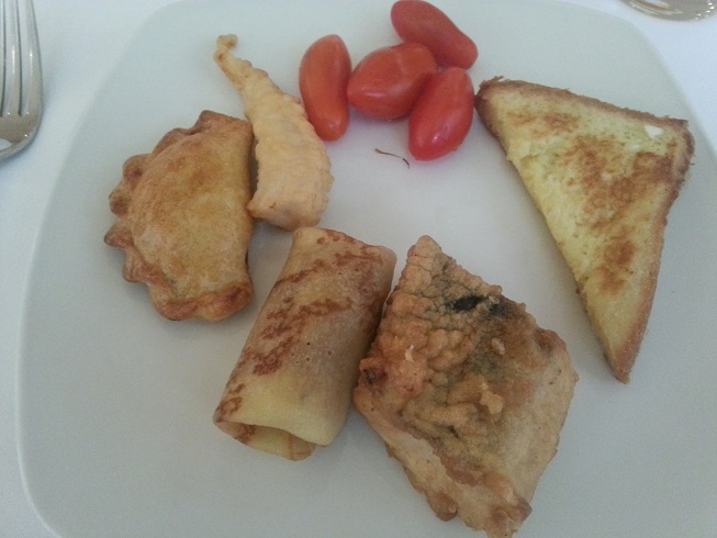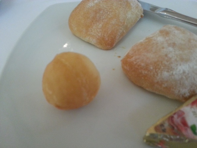 Here we have my choice for today, starting at the top and going clockwise: plum tomatoes, french toast, fish in batter, meat in a pancake, pasty containing spinach and cheese, chicken in batter. Attachment 44110 Curd cheese topped off with dried fruit. Attachment 44111 A lovely, light, fluffy, airy doughnut about 1" in diameter in front of a couple of bread rolls. Attachment 44112 |