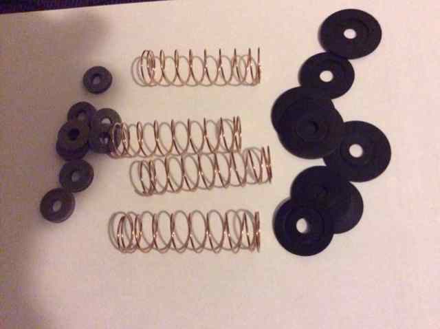Beest, there are rubber or plastic seals inside. What you'll find inside are felt washers (left), springs and rubber washers (right).Attachment 46617. As well as the pistons. MAKE SURE YOU DO NOT MIX UP THE PISTONS when you take them out. They are likely not numbered and are NOT identical, but easy to mix up. Follow best practice as in Zen and the Art of Motorcycle Maintenance.