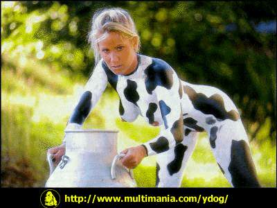 I'd look pretty pissed if I was naked and painted up like a cow, I dunno bout you...