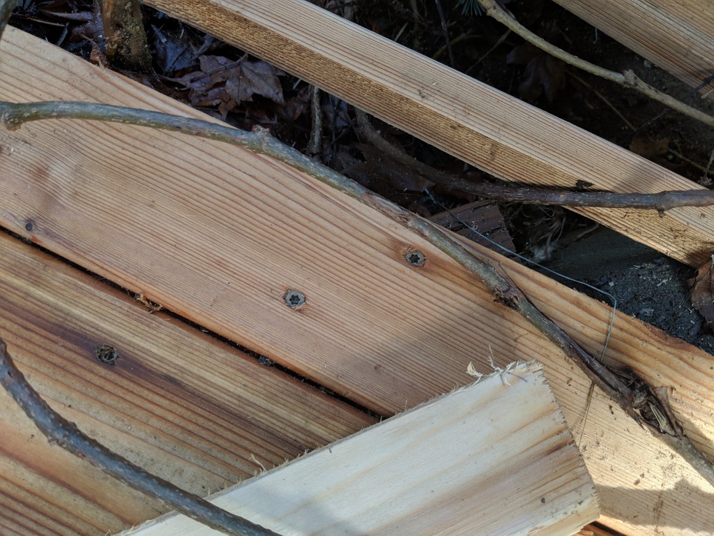 I stacked it up under the roof out of the rain. I chose the wood carefully, but there were still things to look out for. This grade of decking had only one side graded good, and you can see the edges of some of the boards are quite rough. Those are the down sides, obviously. And there were several places where the protective plastic covering the bunk of boards at the lumberyard where the staple was still in the board. I pulled out a couple, I sawed through a couple, I snagged my hand on a couple, then I decided to stop production and take them all out. This Western Red Cedar is beautiful wood. I didn't have room to in my truck or room to store all I'd need for the whole project, so I got a batch at a time. Mostly 8 footers and a few 10 footers (for those places where the deck was wider to accommodate the posts). I stacked it up under the roof out of the rain. I chose the wood carefully, but there were still things to look out for. This grade of decking had only one side graded good, and you can see the edges of some of the boards are quite rough. Those are the down sides, obviously. And there were several places where the protective plastic covering the bunk of boards at the lumberyard where the staple was still in the board. I pulled out a couple, I sawed through a couple, I snagged my hand on a couple, then I decided to stop production and take them all out. Attachment 67431 Attachment 67432 Attachment 67433 Attachment 67434 |