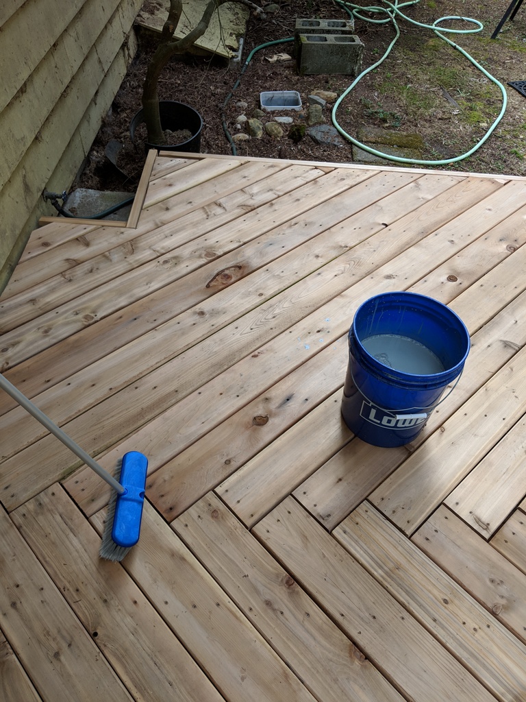 Attachment 67571 Bucket and brush. Attachment 67572 Deck and stain. I know it looks shady. It is shady. Those things are "shadows", I remember them from my time in sunny California. Attachment 67573 Attachment 67574 |