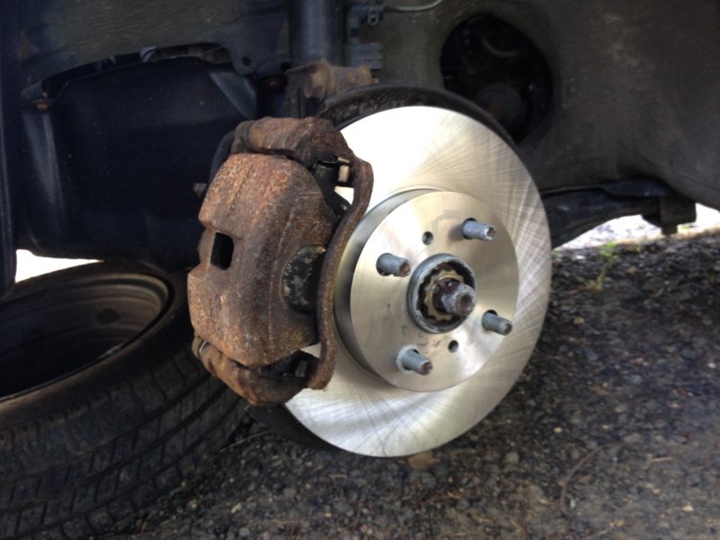The brakes would pulsate more than I liked when stopping hard. Probably warped discs. The discs were also rusty and would rub a little bit just driving around. I had replaced the pads several months ago, and they still had plenty of life left, but I had done a half-assed job of it by not resurfacing the discs. So rather than trying to find a shop to resurface the old discs, I spent $22 each for two new ones from Amazon. Much easier to click a few times and have them delivered than drive around looking for a shop. The old discs: Attachment 48333 And the new ones: Attachment 48334 A lot of rust visible still on other stuff, but everything works well and is solid. I went through almost two cans of brake cleaner, and also lubed the sliding pins and pad retaining clips. These brakes are amazing now. No pulsating and you can stop on a dime. It's fun to slam on the brakes and see how fast the car stops now. |