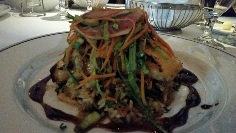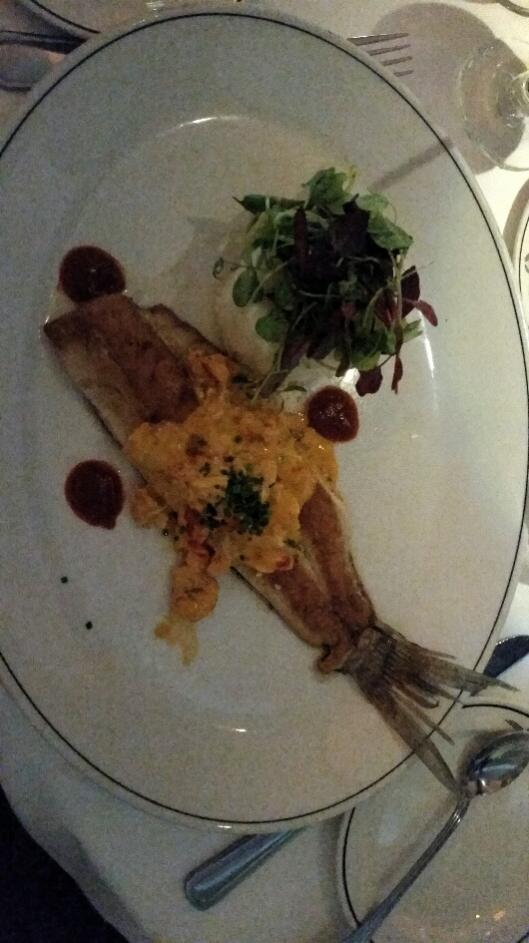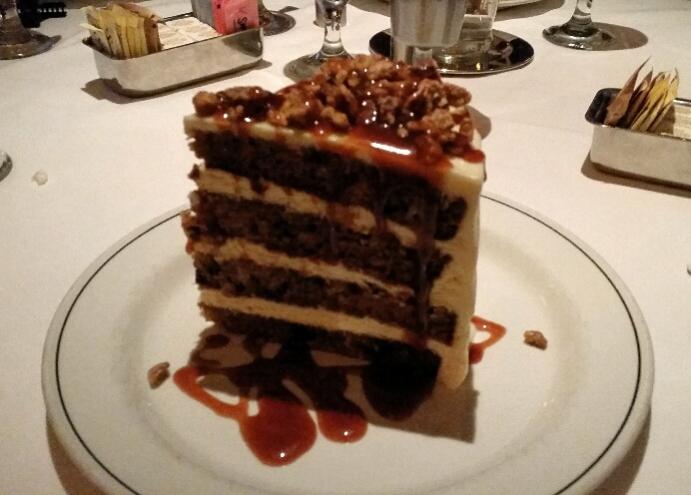 Forgot to upload from Monday night. My boss took us to dinner at a nice steak, seafood, and crab place. The dark was dark, so the pics are kind of blurry. She invited my sister too because my boss knows her. I had seabass and she had bass and we shared a carrot cake.