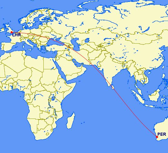 The Boeing 787-9 Dreamliner carried than 230 passengers and crew Attachment 63486 The Independent The Guardian Great Circle Mapper Friends who now live in Perth make the journey back to the UK at least once a year and take flights which typically stop at Singapore or Dubai. They tend to stop for 24 hours at these staging posts rather than hop back on the plane for another eight or ten hours of tedium. I couldn't face the journey no matter how it was arranged! |