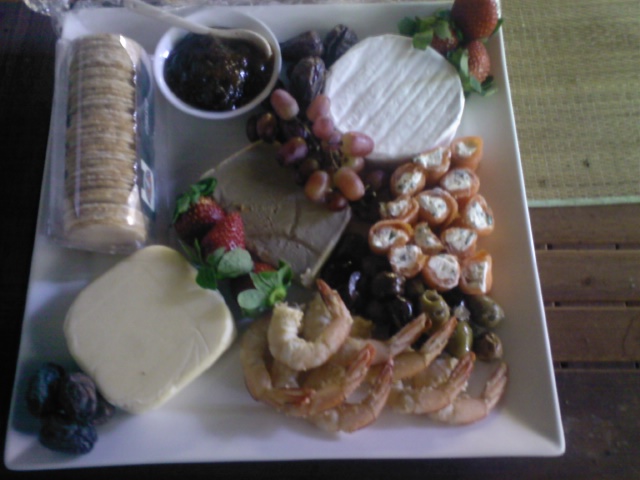 Attachment 23788 This is a prawn salad with kiwi fruit, roasted grape tomatoes and watercress, to be served with a lime wasabi dressing. Attachment 23789 I've also made a spinach pie and will serve boiled baby potatoes in their jackets with sour cream and chives, and we'll be BBQing the amberjack (15kg/35lb) Dazza caught last weekend. To finish, we'll be having chocolate mud cake (cause that's what the kids wanted). |
