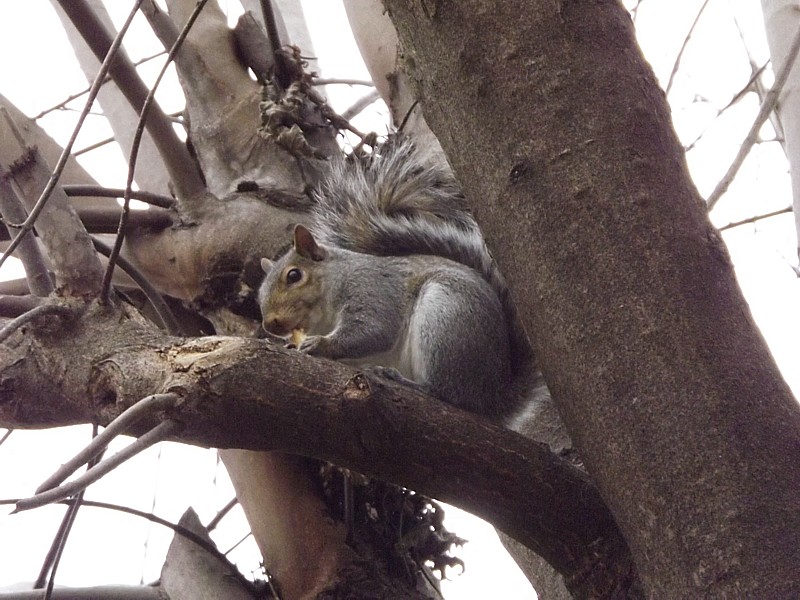 She doesn't come back, having been picked off by one of the pair of hawks that nest in the big cottonwood by the creek. So the kids cry and won't go to sleep and want to raise the babby rabbits ... We did that more than once. It went the usual way: the runt died and the kids had to cope with the death; the others thrived, and the kids had to feed them multiple times a day and check on them constantly, etc., and finally release them into the woods behind our place. Squirrels in PA are all black. In Ottawa, long ago, there were red, gray, AND black squirrels. More than I've ever seen, since. I've been disappointed in the mid-Atlantic squirrel census. |