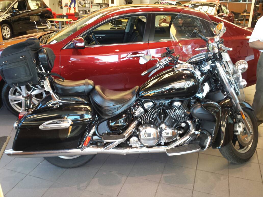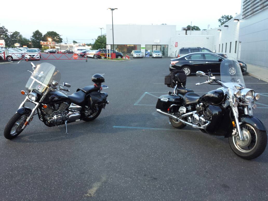 We traded this 2006 Yamaha Royal Star yesterday. On paper this is right up my alley. I was going to buy it. But then when I rode it, it felt real big and heavy, and I don't know that I would want this for my daily rider. So I passed. I did really want to take it to the mountains this weekend though. Amanda and I are going to Lake Wallenpaupack .... It's about a3 hour ride, and that is what this bike is built for. Mine is much lighter and more nimble. Here they are together: Attachment 44611 The best part of this story is that the used car manager wants to buy the big bike. So we did his paperwork, and a set of fake paperwork in my name, as though I were trading my old bike. He is going to let me take it on this vacation to check it out. If I drop it I've bought it. |
