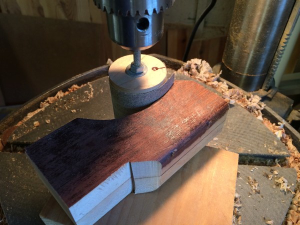 A year or so ago, I posted about making a drum sander to go in the drill press. It comes in handy here cleaning up the ugly saber saw cut. I had left an eigth of an inch or so, and now I sand down to the line. It was hard to see the line and slow going, but I persevered.