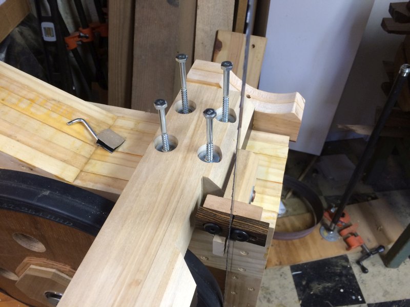 I had been working on the table mount system. The block that supports it all needs to have bolt holes drilled into it to bolt it to the frame. Pretty straight forward stuff. I mark the hole locations. I'm anal about this, but don't know why. It doesn't matter much exactly where the bolts go, and they will be out of sight. Attachment 57814 First I use large forstner bit to make room for the bolt heads and washers. Attachment 57815 Then I drill the center bolt holes in the little divot left in the center by the forstner bits. Attachment 57816 It will look like this with bolts in place. Attachment 57817 |