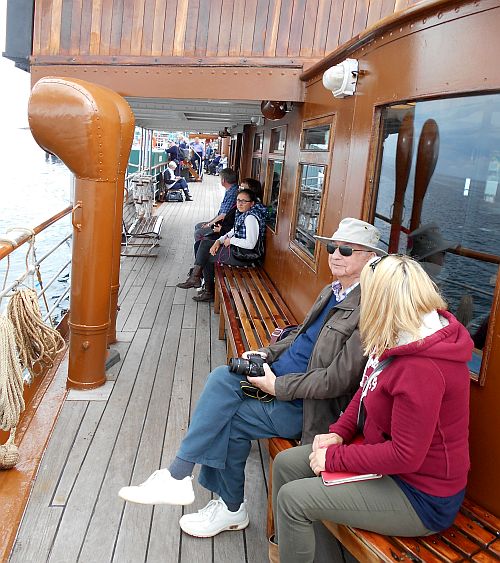 For a reasonably brief trip (two hours) there were probably more facilities than you get on your average Channel crossing. And all a heck of a lot more attractive too. Attachment 52344Attachment 52345Attachment 52346 Not that people were partaking; aside from me snapping off snaps, everyone was pretty much on deck. Well, that's the point of the trip anyway. Even if you've done it countless times and are taking a virgin along... Attachment 52347 |