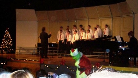 My boys are considerably older than most here, but still proud. This past Tues - was a "Christmas concert" at school - he is in the "Boys Chorus" - there are several groups. He at first played the Grinch and then they sang a few songs. He's the big one in the middle top row.