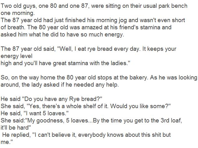 had been going to the Western Wall to pray, twice a day, every day, for a long, long time. So she went to check it out. She went to the Western Wall and there he was, walking slowly up to the holy site. She watched him pray and after about 45 minutes, when he turned to leave, using a cane and moving very slowly, she approached him for an interview. "Pardon me, sir, I'm Rebecca Smith from CNN. What's your name? "Morris Feinberg," he replied. "Sir, how long have you been coming to the Western Wall and praying?" "For about 60 years." "60 years! That's amazing! What do you pray for?" "I pray for peace between the Christians, Jews and the Muslims." "I pray for all the wars and all the hatred to stop." "I pray for all our children to grow up safely as responsible adults and to love their fellow man." "I pray that politicians tell us the truth and put the interests of the people ahead of their own interests." "How do you feel after doing this for 60 years?" "Like I'm talking to a fucking wall." |
