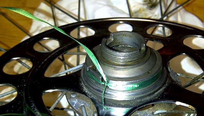 Attachment 38916 So then I put a little grease in the bearing chase inside the freewheel. And put the ball bearings in, one by one, and pressed them into the grease so they would stay stuck in place for now. Attachment 38917 If I was called handhandhand, I would have taken a picture of this step. But since I only have 2 hands, you will just have to use your imagination. I held the flywheel with the bearings up, like you see in the picture above, so gravity would continue to hold the bearings in place, and I took the wheel and flipped it over so the ribbon was dangling down. I brought the flywheel up to the hub so the ribbon went through the hole, and I just gently brought them together. Then I flipped it all over and took a picture. Attachment 38918 I pulled the ribbon, and it came out without too much trouble. Just slow and steady tension while I wiggled the flywheel a little in place. I tried turning the flywheel, and it turned just fine. I could hear the pawls doing their job. Click, click. Click, click. Click, click. Then when I turned it the other direction, the pawls engaged the wheel and the whole wheel would turn. It was working perfectly. So I put ball bearings in the top, and put the ring back on. Attachment 38919 The freewheel was actually pretty loose when I used both shim washers under the ring. It had been that way before I took it apart. So I tried removing both shim washers. Then it was way too tight. So I put one shim washer back in. Oh, and then I poured a little oil in there to really lubricate everything. It's just about perfect now. |