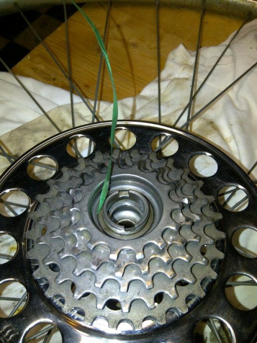 I took apart the rear wheel of a woman's ten speed bike I dug out of the neighbors' trash. I'm trying to fix it up real nice for my wife so she'll want to join the kids and I riding bikes. This is an old Sears Ted Williams Free Spirit woman's bike, made by Puch in Austria about 35 years ago. It's dirty, but it's kind of nice. You could hear lots of nasty grit in the bearings of the rear wheel and cassette. So I took it all apart and cleaned it up. I want to put it back together now, but I can't figure out how you get the cassette back on. Attachment 38895 Attachment 38896 The problem is these little pawls that engage the ratchet on the inside of the cassette. You can see in the picture that there are these little wire springs that push the pawls out. The springs are kind of strong. I can get the springs under the pawls, and hold them in place with my fingers, but then my fingers are in the way of putting the cassette, on, so I have to let go, and the pawls and springs pop back open again and are in the way of the cassette going on. There has to be a trick to hold the pawls closed so you can put the cassette back on. The manufacturer had to put it together somehow. Do you know the trick? I was thinking of somehow wrapping dental floss around the whole hub to hold them closed until I get the cassette on and then magically releasing the dental floss and pulling it out once I get the cassette on. But I'm not sure how to make that work. My knot/lashing skills are lacking. Of course, I also will need to put the ball bearings back and hope the grease holds them in place while I'm gingerly putting it all back together again. But at least I understand in theory how to do that part. Should the ball bearings be put on the lip inside the cassette, and the cassette brought up to the wheel from below, or should they be put in the lip on the wheel and the cassette brought down from above? |