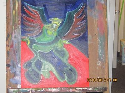 Jb, you've let the canvas limit your art. Those wings would be ok flowing off of the canvas. as it is, the angel looks to be trapped in a box.