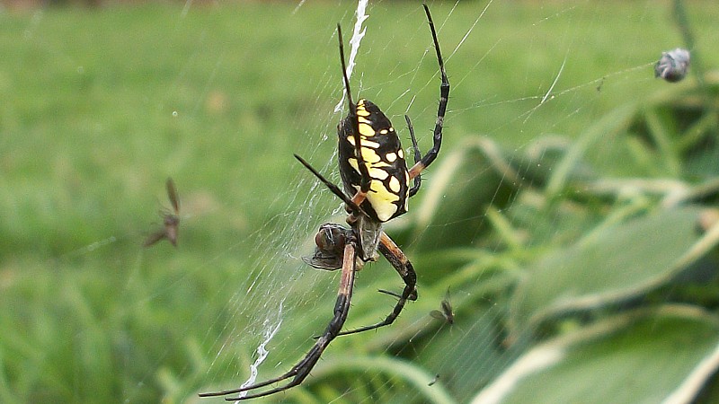 In my front yard. In Momdigr's flowers. I've been told to refer to 'her' (the spidder, not Momdigr) as Charlotte.