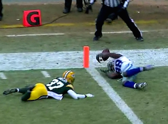 The referee called it a valid catch on the 1 yard line The Packers coach appealed the ref’s call The replay videos were viewed The referees changed the call to "incomplete pass". The rules were followed. Some fans liked, and some not so much… but so what ? The only controversy is wishful thinking … would the next play(s) at the 1 yd line or the kick-off have changed the score ? When I watch the video in the above link, I see two events that are consistent with the final ruling. 1) The ball did hit the ground (and Bryant did not have control of the loose ball) 2) In the end zone, Bryant re-caught the loose ball from the air while on his side/back I find it hard to believe this referee (call-> appeal-> decision) shows a corrupted spirit of the game. Whoever's turn is next.... |