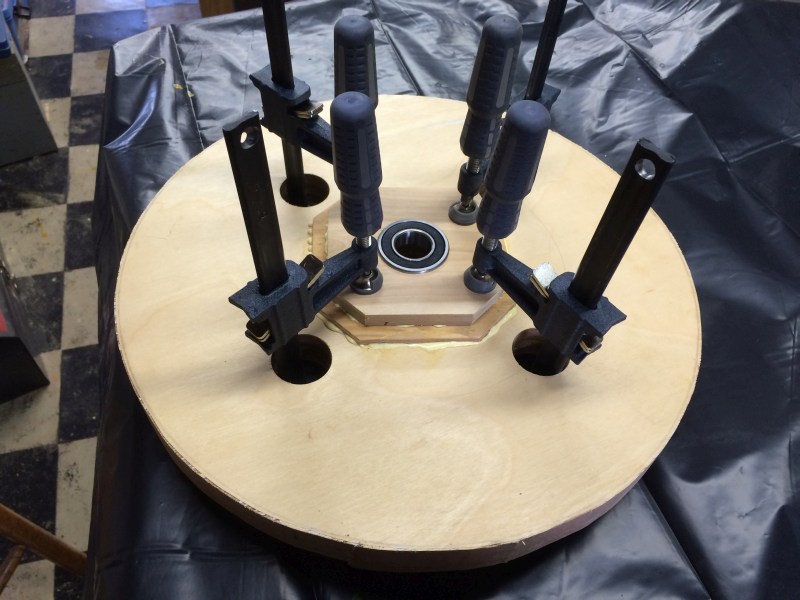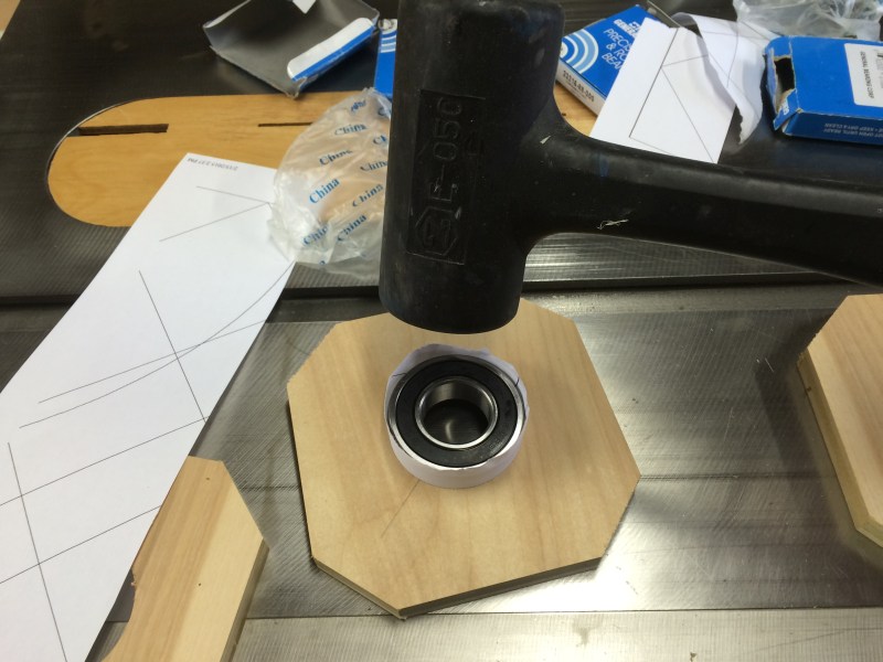 I plan to come back and update this thread from the start to show the process of me building a band saw. But for now, here's a picture of bearings being glued to the unfinished wheels. Attachment 55778 |