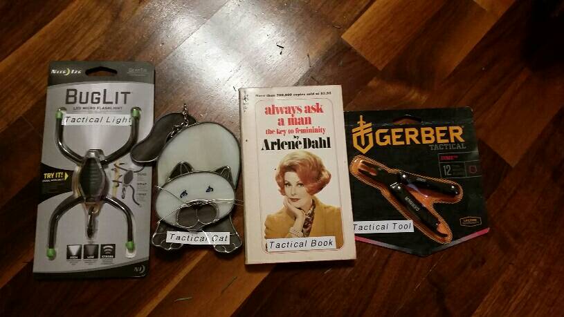 I really like the spider light and the Gerber multi-tool. I'm hooking the spider light on my backpack and the multi-tool in my purse. [emoji4] The cat is hanging on the mantel above the fire place. And soon, I will read the book. I figure it would be funny to read. Attachment 58935Attachment 58936 Sent from my SAMSUNG-SM-G850A using Tapatalk |