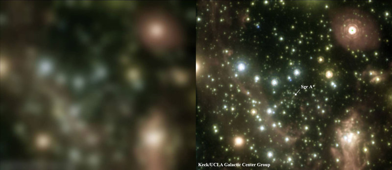 . ... and you get a little closer to understanding the "Adaptive Optics" technologies that are coming to maturity in astronomy, particularly at the Keck Observatory in Arizona... Here is distorted infrared light coming from Uranus (left) improved via "AO" (right) For Sharpest Views, Scope The Sky With Quick-Change Mirrors NPR - June 24, 2013 Attachment 54032 . ... and that lets you see the super-massive black hole at the center of the Milky Way galaxy. Attachment 54033 . Actuallly, the technical development was the reverse, starting with the US military wanting to actually "really see" Russian satellites in case they were carrying weapons. The AO technology was declassified so astronomers could take advantage of it. . |