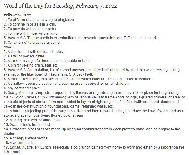 The word for today is 'crib'.