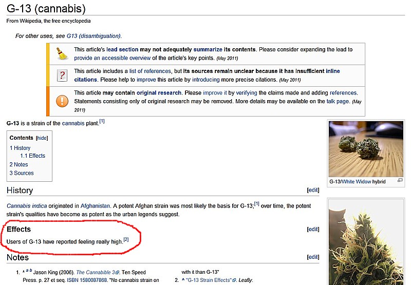 This is from the Wikipedia article on "G-13", a strain of marijuana.