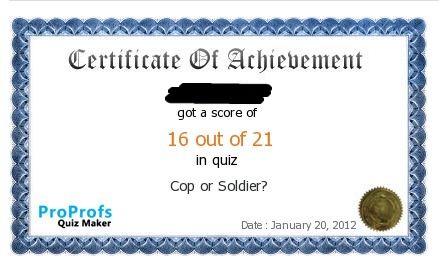 I looked for "cop gear".. I noticed the zipcuffs in one, and the low contrast star badge shoulder insignia. I only mistook one soldier for a cop, but lots of cops for soldiers. |