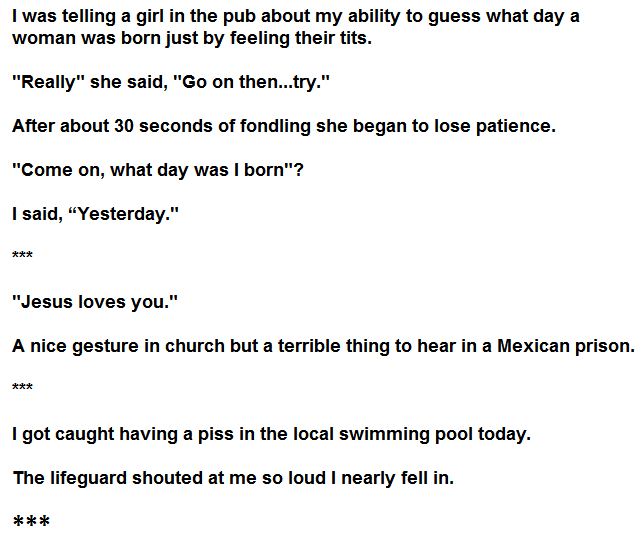 Most of the funny stuff I occasionally get is from my dad. Here's one:
