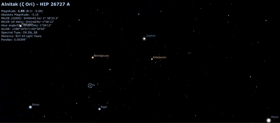 With the full moon, Jupiter and Venus all so brightly lit up, this new brilliant light moving across the sky was almost startling. The satellite went from upper right to lower left in this map, and passed just below Alnitak (marked with a circle) and Alnitan (middle star) in Orion's belt. Attachment 40901 Silly to be excited by what now must be a common event, but it blew me away ! |