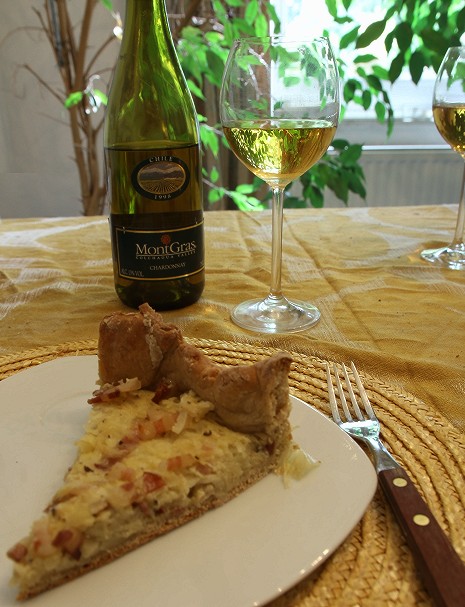 It's the time of year when we traditionally eat Zwiebelkuchen (literally "onion cake"), preferably with a glass or two of Federweisser (grape juice that has just started fermenting). Alternatively white wine will do. In short: make some yeast dough from approx. 300g flour. While it rises fry some 50-100g chopped bacon set it aside. Sweat/sauté 500-1000g of chopped & salted onions and let them cool. Mix onions with fried bacon, pepper, 2-4 eggs & 200-300ml cream. Spread the dough into a springform pan & add onion mix, sprinkle with more bacon and optionally caraway seeds. Bake at approx. 180°C for about 30 minutes. |