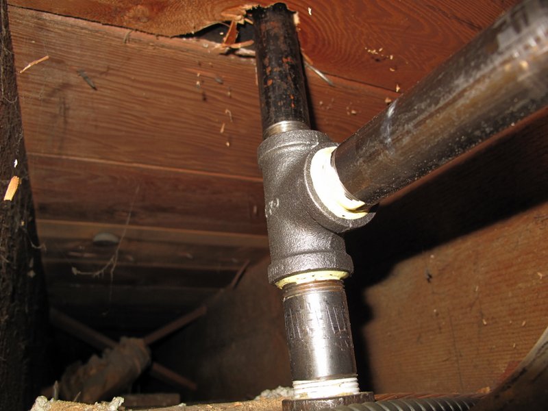 It turned out ok, elbow to be facing toward the kitchen. Attachment 40950 Next I'm moving toward the hole in the kitchen floor. Attachment 40951 Imagining where the next section will go. Attachment 40952 I decided to install the tee on this long straight pipe first, so over to the vise. |