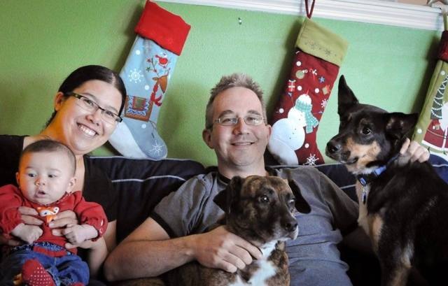 My kids and I, Christmas Eve, preparing to open a single present. This is a tradition in our house. I was fresh out of the shower, no makeup or anything, lol.
