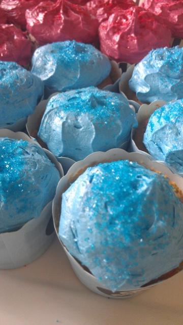 To start off, I have an offering of cupcakes. There's a big football match here tonight, and I traditionally make cupcakes which are themed for the two sides. My side wear maroon jerseys, and Daryls side wear blue. The maroon ones are chocolate and raspberry cake. The blue ones are blue cherry. They needed a bit more cooking. I think the type of cherry I used should have been drained a bit more. I don't really care about the blue ones though. They're losers anyway. Attachment 44287 |