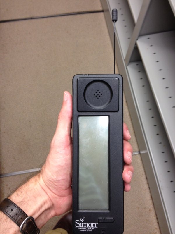 of our department to connect all the Apple- II's and Mac-Plus's, I came to know the new head of "Data Processing" for our university. He walked around campus always with a phone unit as big, or bigger, than that one, stuck to his head. The antenna was longer than the phone, itself. I used to tease him that he walked lop-sided, and he needed to get a Mac. |