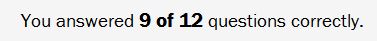 11 of 12, and I'm disappointed in myself for the one I got wrong. I still don't know the right answer.