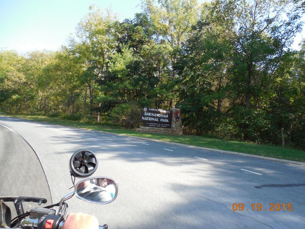 Fast forward to Front Royal. At this point I realized that I had not put sun screen on because it was so gloomy when we left, and so cool out, that I didn't feel it until we stopped. So... find a pharmacy and procure sunscreen and something with lidocaine in it. We found a cool little tavern to have lunch, and then set out to tackle the Skyline Drive. We've ridden 177 miles at this point... Skyline is 110 miles... and it's 35 mph. So it is said to take 3 1/2 hours to ride. We got on it at 3pm