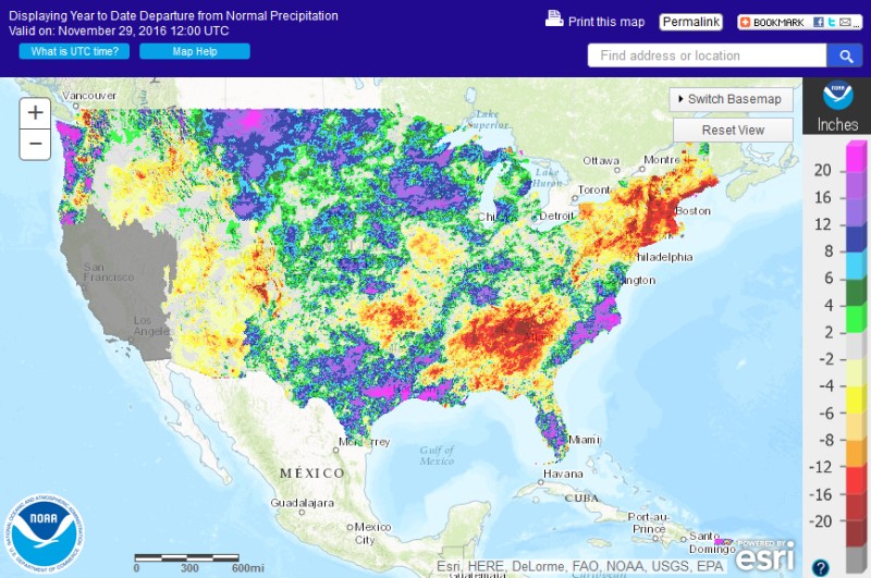 Here's the year to date rainfall map as a departure from normal. Since the beginning of the year, that region has seen much less rain than normal. Attachment 58675 |