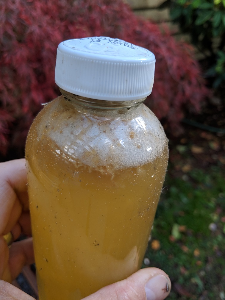 My God, it's delicious. There was a baby "mother" starting again at the neck of the bottle, I discarded it. It's hot here today and I'm working in yard and I'm hot and thirsty. There's no way that gallon will last until dinner time |
