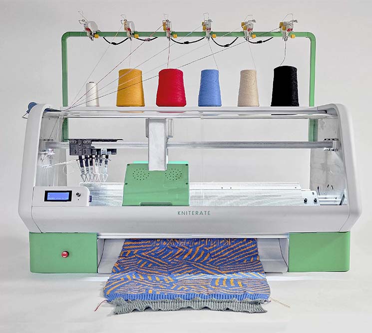 Kniterate is a compact industrial knitting machine created for designers and entrepreneurs that facilitates the one-off creation of garments. Built by London-based designer Gerard Rubio, Kniterate is meant to act as a sort of 3D printer for knitwear, allowing you to create digital designs in Photoshop and turn them into a wearable garments in just a few hours. The machine is capable of knitting scarves, sweaters, dresses, ties, or even the components of shoes.