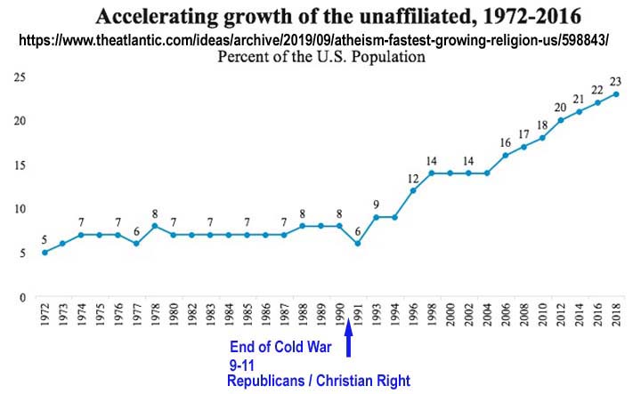 I had to walk out about 12 years ago. The Scranton diocese had always been pretty right wing but JCs message still managed to bleed through. I wouldn't argue with the time frame in the chart. They were completely off the rails for a few years before we had a family meeting and left. It was a tough call as my family actually swung the hammers for the local building.